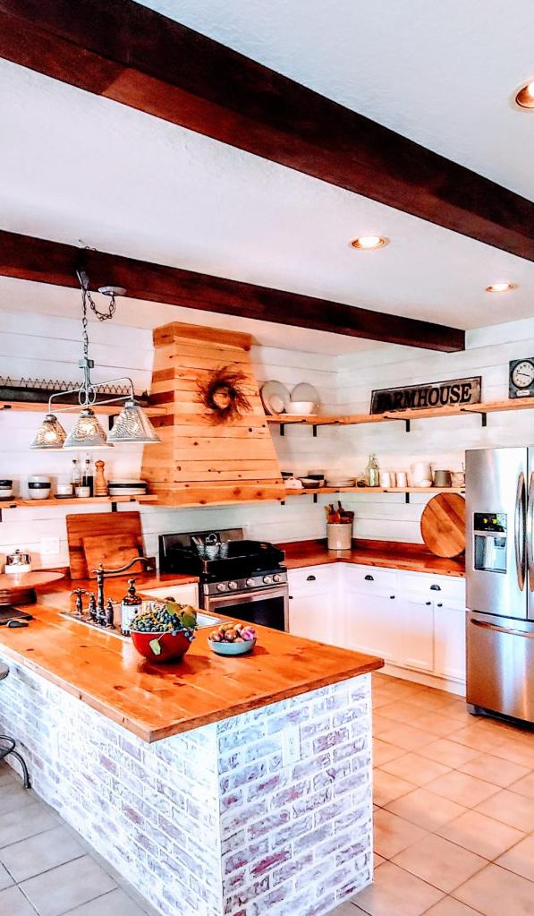 So this is where we got to at that point. Thank god for the new stove. We did not have the money at the time to get a new refrigerator but I had a plan for that as well. I will share the first change to the cabinets and the fridge. But I wanted you to get the idea of what we were working with, more of the never ending story to follow!